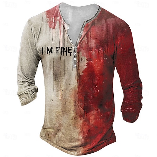 Per uomo Schizzi di sangue Macchie di sangue Maglietta Maglia Henley Manica Lunga maglietta Stampa 3D Henley Camicia Designer Retrò Vintage Streetwear Casuale Rosso Cachi Estate Primavera Autunno