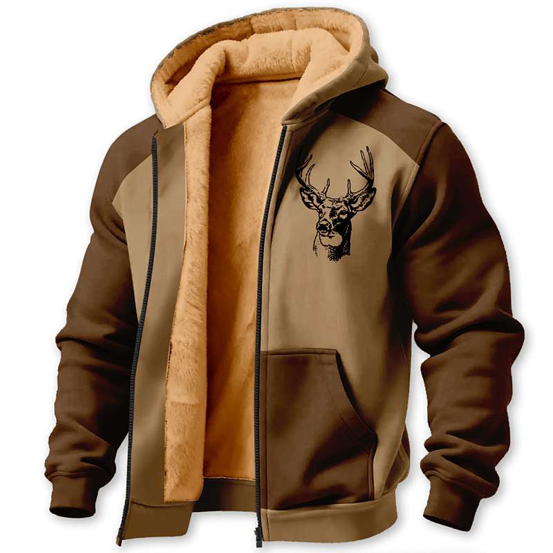 Men's Deer Fleece Hoodie Jacket Sweatshirt Classic Hunting Long Sleeve Crew Neck Outdoor Camping Brown Green Dark Gray Zip Up Fall Winter Designer S M L XL 2XL 3XL