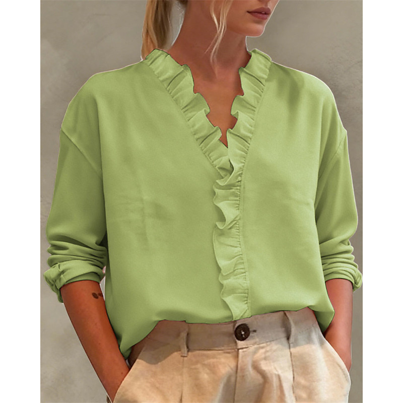 Women's Blouse Dressy Tops Solid Color Plain Elegant Vintage Daily Long Sleeve V Neck Regular Tops Daily Work Holiday Ruched Ruffle Patchwork Blue Teal White Pink Green Summer Spring