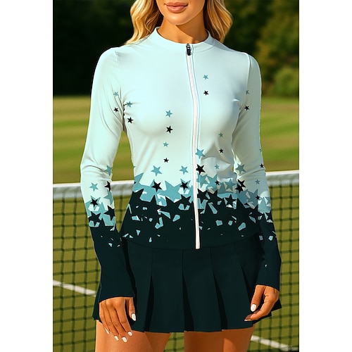 Per donna Geometrico Sfumatura Top Maglietta sportiva Maglia da tennis Manica Lunga Cerniera Floreale UPF50 Resistente ai Raggi UV Alta elasticità Traspirante Pallavolo Tennis Golf Il giro Collo
