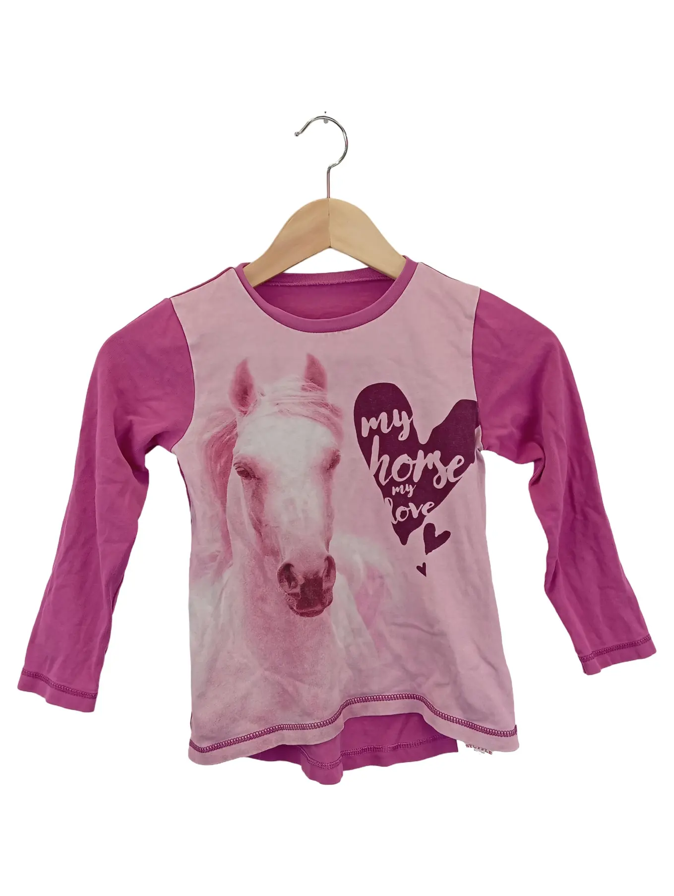 JAKO Kinder Langarmshirt Rosa Pferdemotiv Gr. 116/122