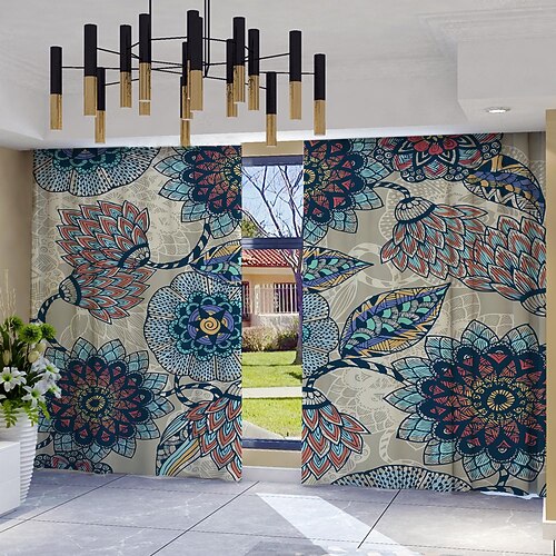 2 tende con motivi geometrici, pannelli per finestre in poliestere con tasca per asta, tende moderne con motivo astratto, lavabili in lavatrice, adatte per soggiorno, camera da letto, cucina, studio,