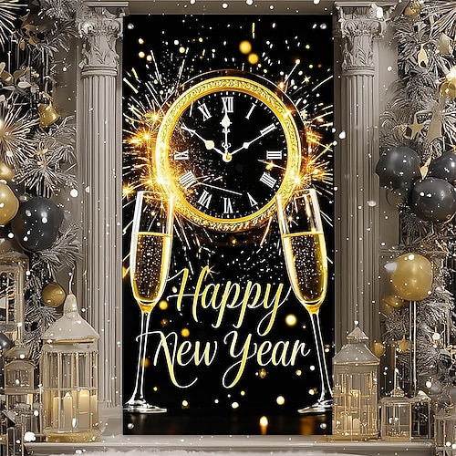 Capodanno Poster Copertura della porta Banner per esterni Buon anno 2026 Carino 3D Da serata Dormitorio Stanza per adolescenti Dormitorio universitario Ragazzi Man Cave Frat Bedroom Sfondi di ripresa