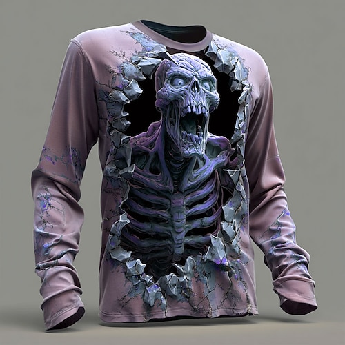 Halloween Herren Zombies 3D T Shirt Langarm T-Shirt 3D-Druck Rundhalsausschnitt Hemd Mode Übertrieben Straße Lässig Täglich Grün 1# Grün 2# Rosa Sommer Frühling Herbst Bekleidung S M L XL XXL XXXL