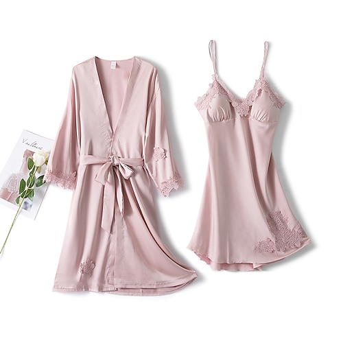 Per donna Abbigliamento da Casa Camicia da Notte Moda Sexy Casual Colore Puro Patchwork Vestiti Casa Vacanza Manica Lunga Scollo a V Nero Rosa Vino Oro Blu scuro Estate Primavera Autunno Vestibilit