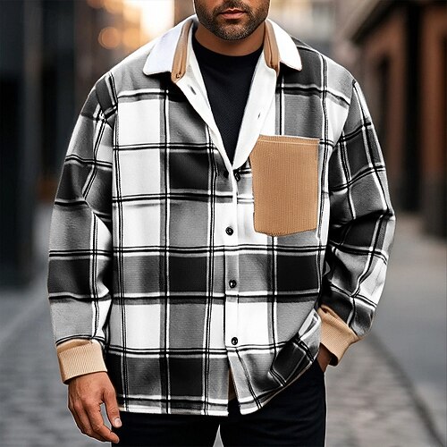 Per uomo Giacca-camicia Giacca camicia Giacca invernale Plaid Vacanza Abbigliamento quotidiano Nero Cachi Manica Lunga Bavero Autunno Inverno Abbigliamento Tasca
