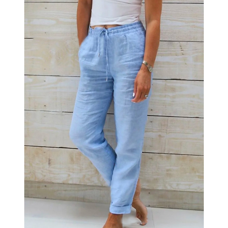 Women's Loungewear Pants Simple Basic Casual Pure Color Pocket Elastic Waist Cotton Linen Pants Pant Vacation Home Daily Blue Summer Spring