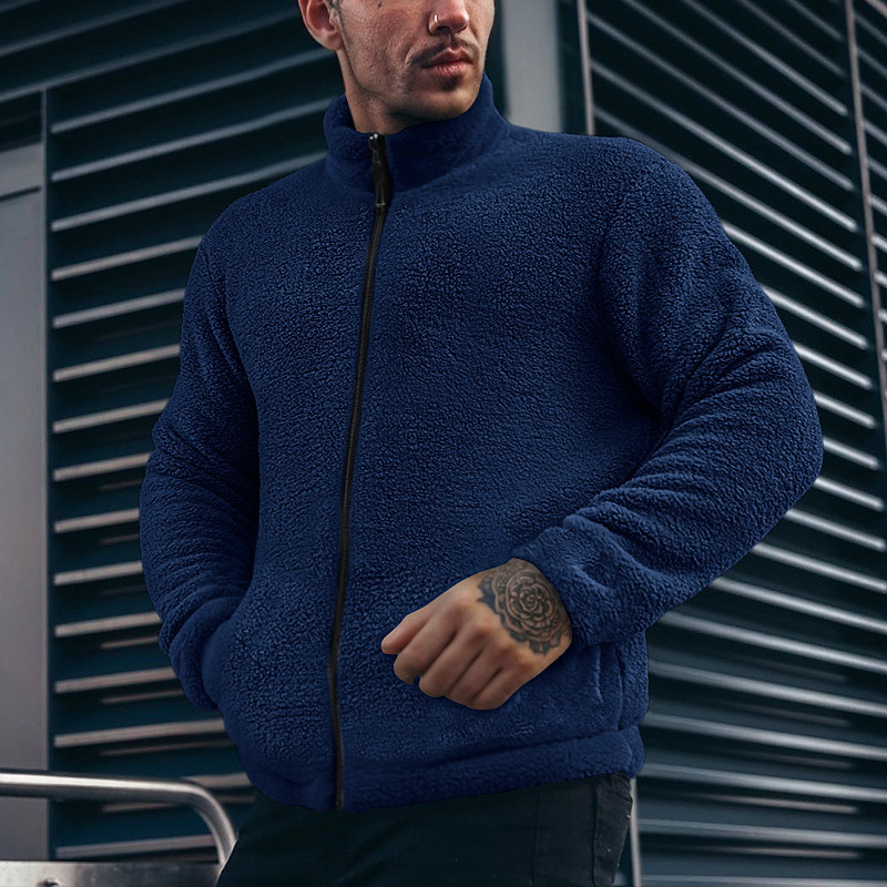 Men's Fleece Jacket Windbreaker Teddy Coat Formal Home Warm Pocket Full Zip Winter Spring Fall Solid Color Vintage Fashion Stand Collar Regular Black Brown Khaki Dark Blue Peacock Blue Jacket