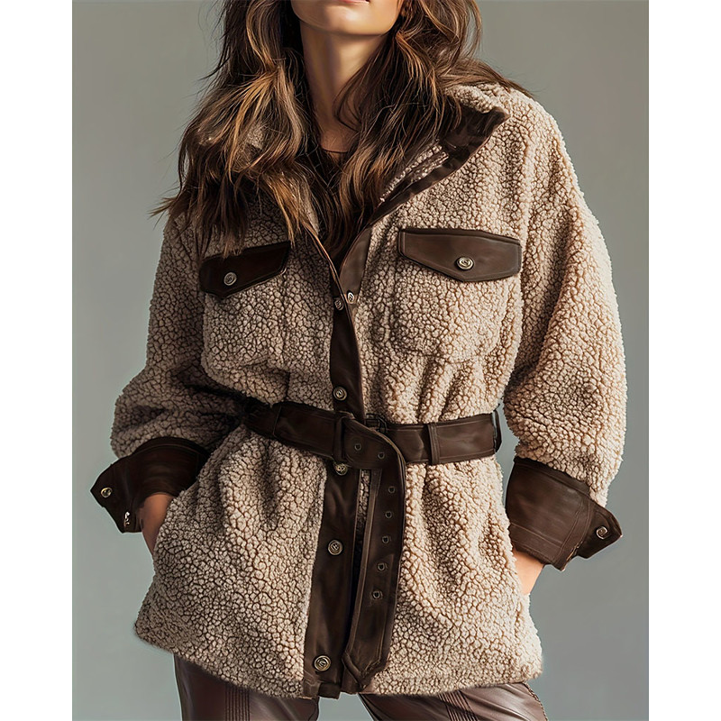 Women's Winter Coat Faux Fur Coat Windproof Warm Patchwork Pocket Buttons Elegant Active Vintage Fashion Solid Color Outdoor Vacation Home Office / Career Regular Turndown Regular Fit Long Sleeve