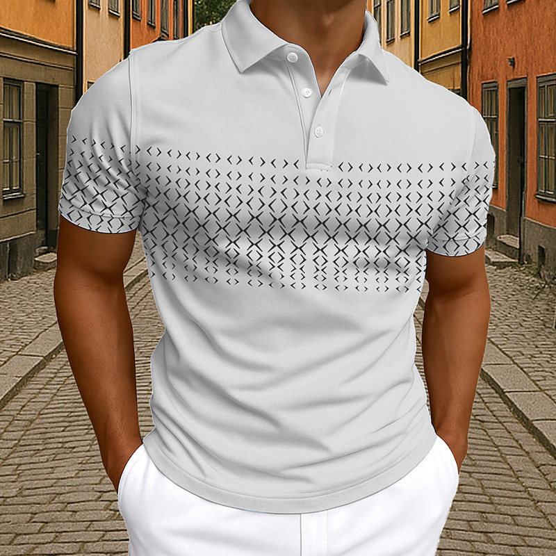 Men's Polo Business Casual Turndown Short Sleeve Geometric Buttons Summer Black White Blue Light Grey Polo