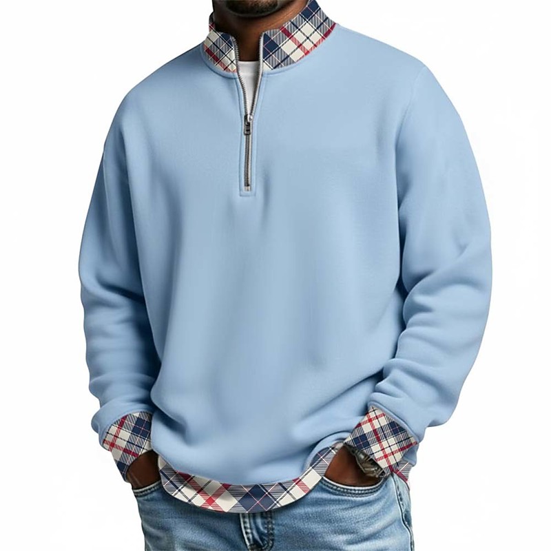Men's Plaid Waffle Polo Shirts Zip Polo Shirts Long Sleeve Polo Shirts Grandad Collar Casual School Athleisure Holiday Daily Wear 3D Print Quarter Zip Polo Spring Fall Blue Red Navy Blue
