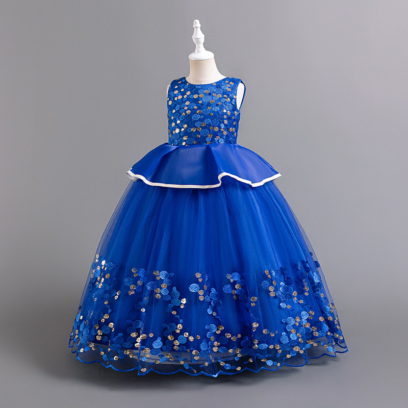 Flower Girl Dress Girls' Formal Dress Wedding Attire Prom Party Wedding Elegant Fashion Adorable Sequins Patchwork Floral Sleeveless Crew Neck Blue Wine Red 4 years