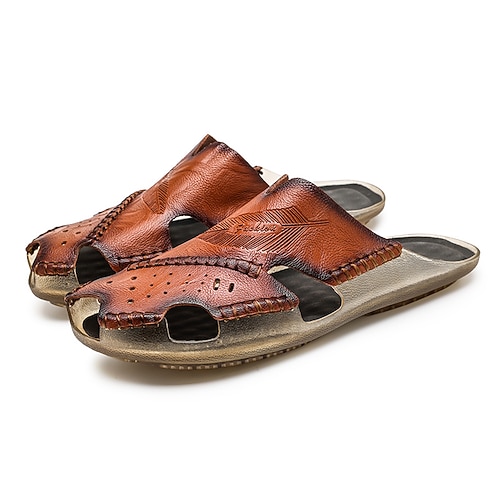 Braune Schlupfsandalen aus Leder für Herren mit perforierten Details und Stretcheinsätzen – bequem und stilvoll für die Freizeit sowie Outdoor- und Sommeraktivitäten