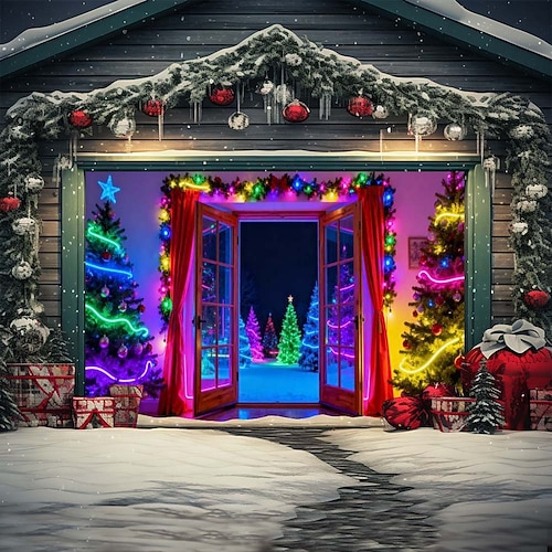 Weihnachtliche Garagentorabdeckung mit Weihnachtsmotiv – festliche Weihnachtsdekoration, weihnachtliche Schneelandschaft mit Weihnachtsmann für die Garagentür, geeignet für den Außenbereich.