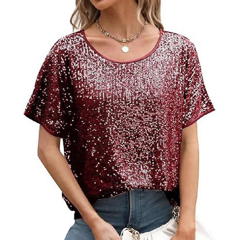 Women's Sequin Sparkly Party Glitter Sparkly Fashion Modern Short Sleeve Crew Neck Regular Tops Daily Weekend Sequins Silver Black Pink Wine Green Summer