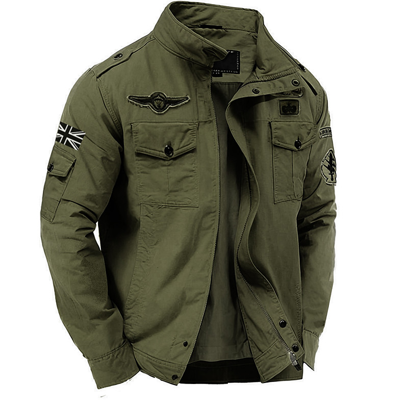 Men's UK National Flag Cargo Jacket Windbreaker Military Jacket Practical Casual Outdoor Camping Hiking Embroidered Side Pockets Zip Front Fall Winter Stand Collar Long Sleeve Black khaki Army Green