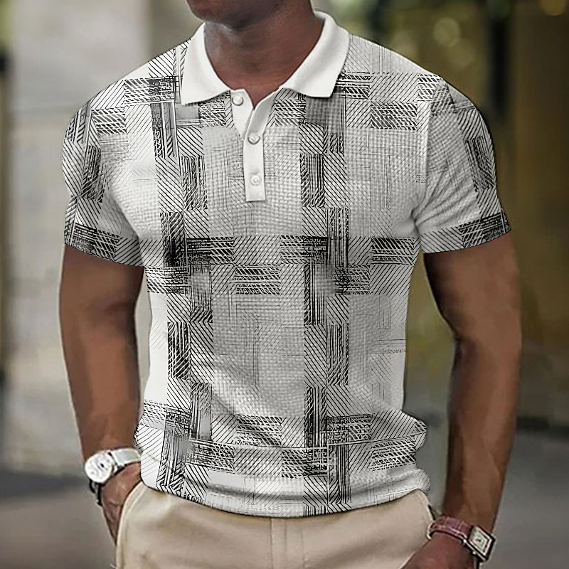 Men's Line Polo Short Sleeve Polo Shirts Collared Shirts Business Casual Business Athleisure Daily Wear Pocket 3D Print Buttons Summer Purple Green Black-white