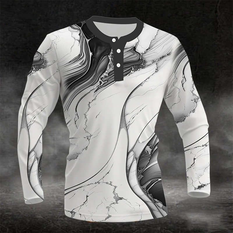 Men's 3D Print Marble Henley Shirt Long Sleeve Fashion Cute Daily Casual Holiday Going out Spring Fall All Seasons Black Blue Coffee Green Burgundy Henley Henley T-Shirt