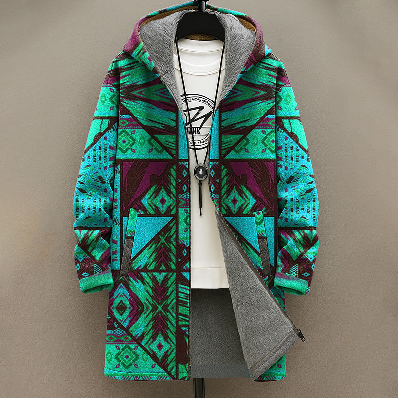 Men's Geometric Winter Coat Fleece Jacket Coat Thermal Warm Comfortable Casual Daily Wear Zipper Pocket 3D Print Fall Winter Hooded Long Sleeve Red Blue Green