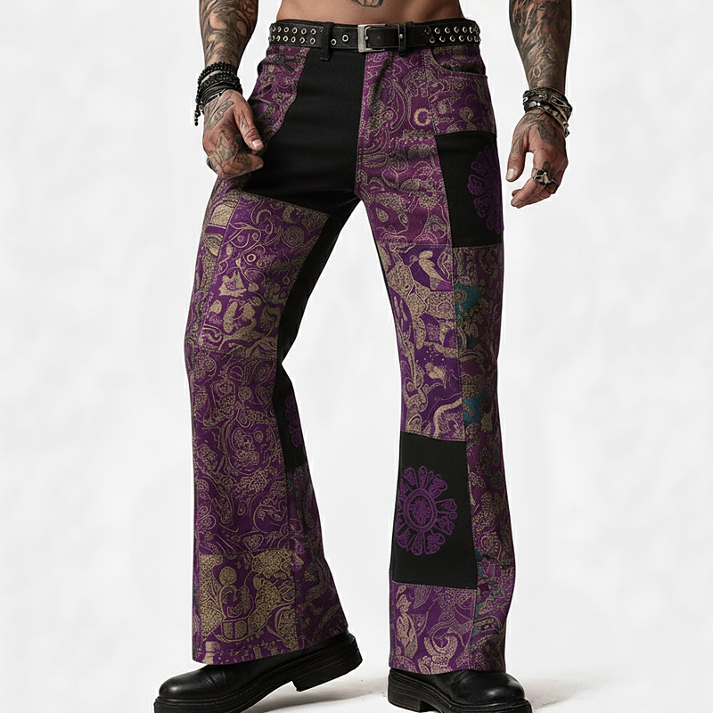 Men's Geometric Color Block Patchwork Trousers Disco Pants 60s 70s Bell Bottoms Mid Waist Vintage Retro Outdoor Party Casual Side Pockets Flared Leg Pants Trousers Spring Fall 3D Print Blue Red Purple