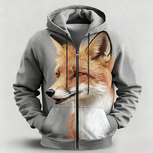 Per uomo Volpe Stampa 3D Felpa con Cappuccio Giacca di pelle Felpa Fantasia Stampa su tutta la superficie Con cerniera Vacanza Uscire Abbigliamento casual alla moda Arancione Blu scuro Grigio Cerniera