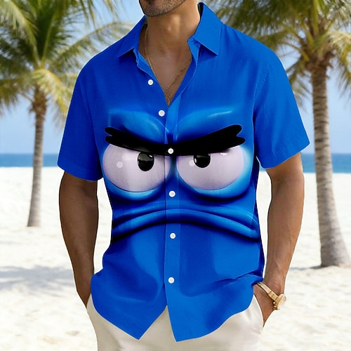 Per uomo Illusione ottica Fantasia Cartone 3D Faccia arrabbiata Camicia Camicia Estiva Camicia con Bottoni Manica Corta Divertente All'aperto Vacanza Abbigliamento Quotidiano Estate Collo ripiegato