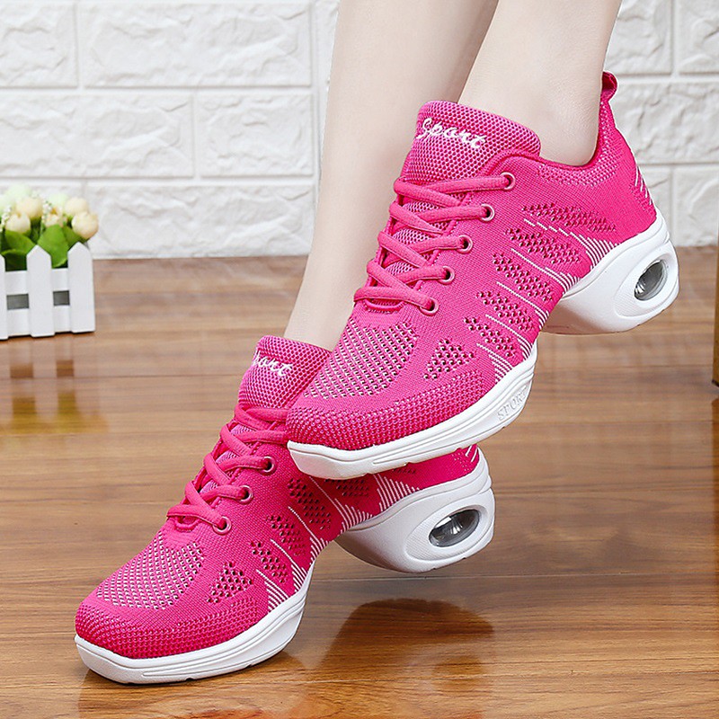 Sneakers da ballo jazz da donna in rete rosa e nera - scarpe da ballo hip-hop professionali, leggere e traspiranti, con suola ammortizzante per allenamento e performance