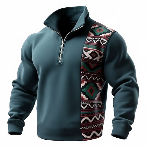 Per uomo Geometrico Felpa con cappuccio Waffle Felpa Moda Quotidiano Etnico Manica Lunga Collo alla coreana Zip a un quarto All'aperto Casa Ufficio Lavoro Bianco Rosso Blu Marrone Con zip Autunno