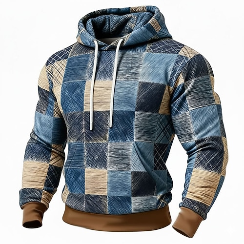 Per uomo Geometrico Plaid Felpa con Cappuccio Felpa Moda Quotidiano Girocollo Casa Abbigliamento casual alla moda Feste Blu Marrone Verde Cachi Coulisse Autunno Inverno progettista S M L XL XXL XXXL
