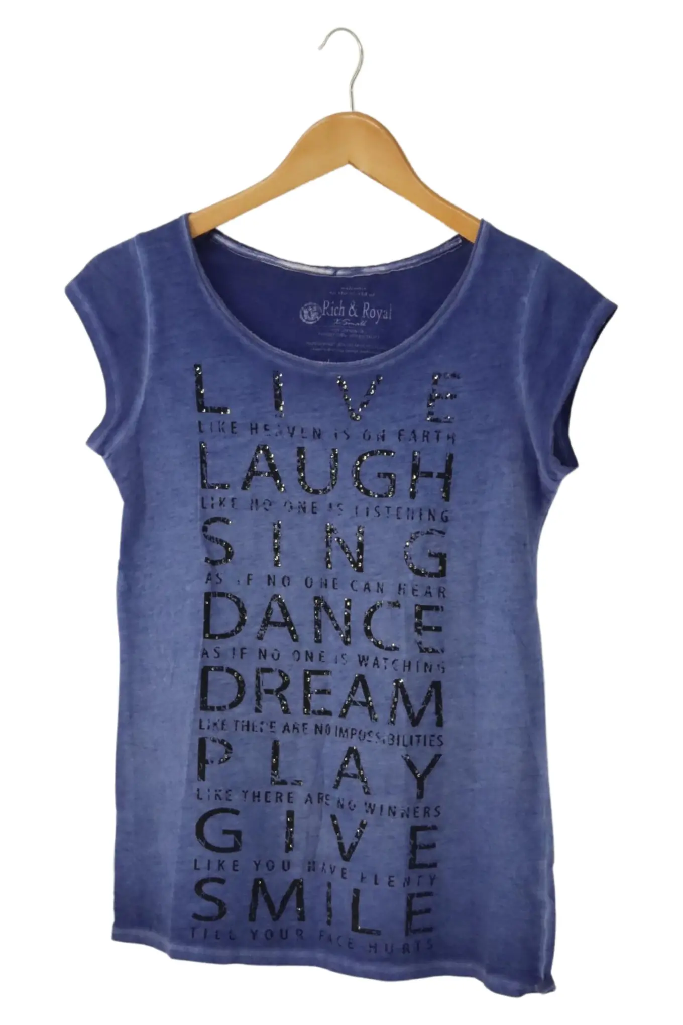 RICH & ROYAL T-Shirt Blau XS Damen Kurzarm Casual Baumwolle
