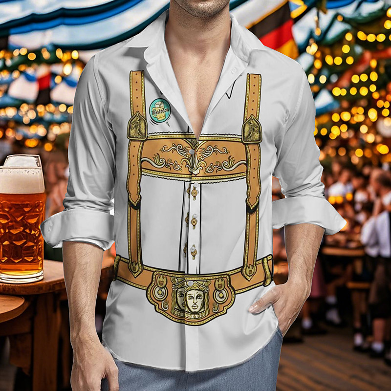 Men's Oktoberfest Shirt Lederhosen Shirt Beer Costume Striped Shirt Bavarian German Alpine Wiesn Carnival Party Beer Festival Traditional Style Cloth