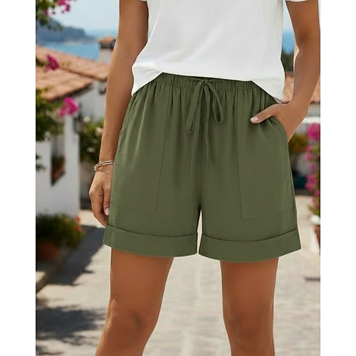 Per donna Chinos Shorts Vacanza Casual Corto Vita media Semplice Coulisse Tasca Comodo Comodità Inelastico Quotidiano All'aperto Nero Rosa Blu marino scuro Verde Estate Primavera Vestibilità comoda