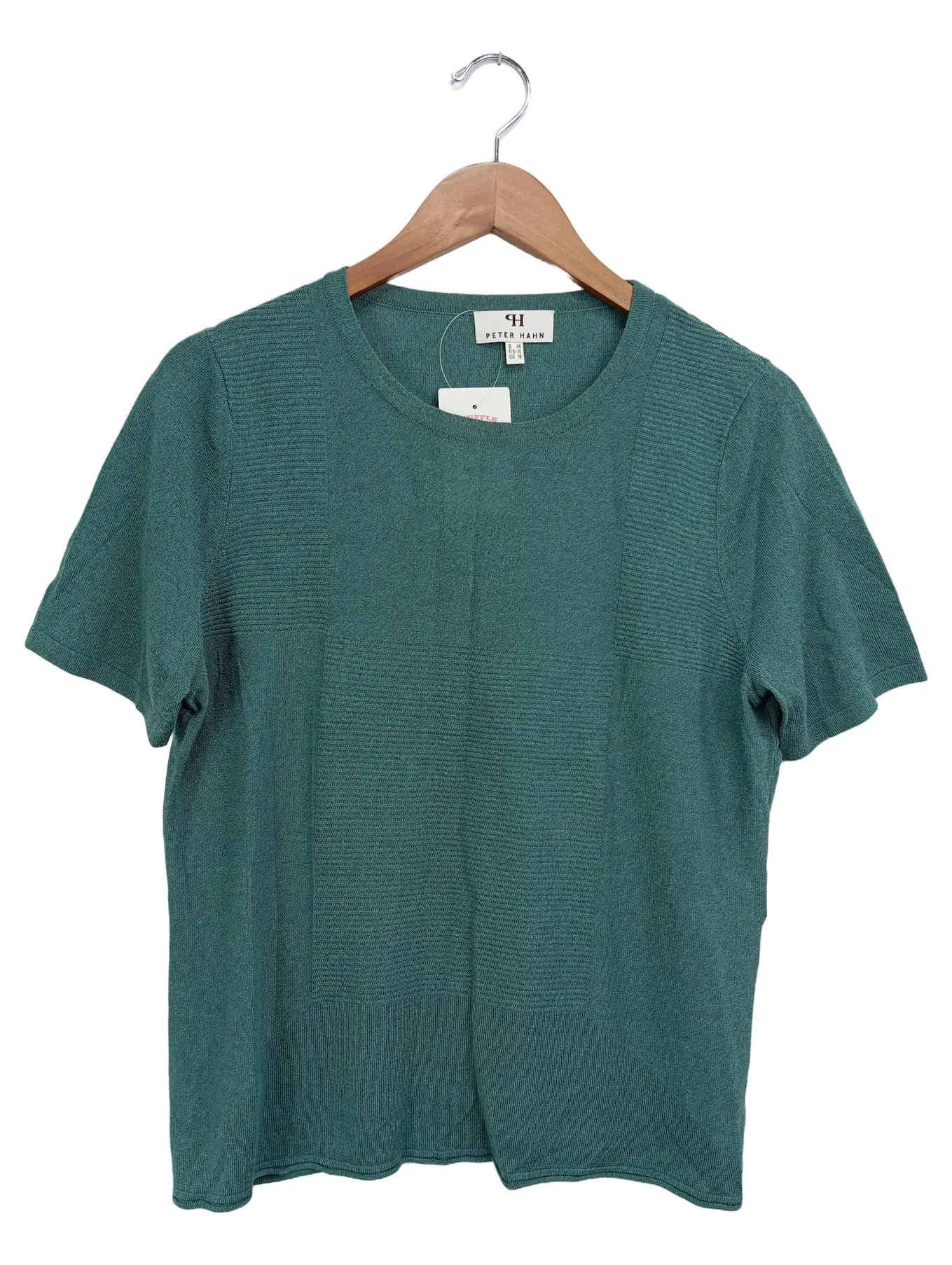 PETER HAHN T-Shirt Damen 44 Grün Viskose Baumwolle