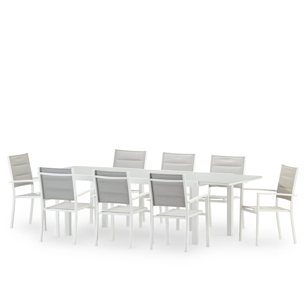 Set tavolo e sedie da giardino 8 posti in alluminio bianco
