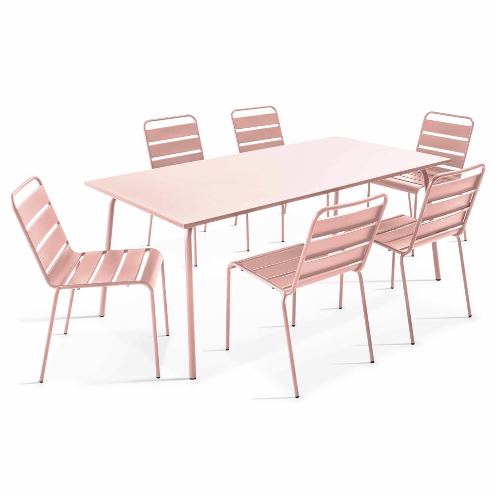 Tavolo da giardino e 6 sedie in metallo Rosa