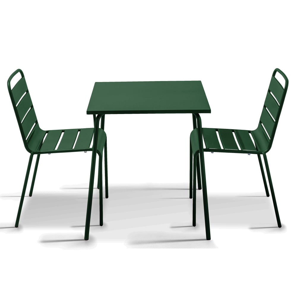 Tavolo da giardino quadrato e 2 sedie in acciaio Verde Bosco
