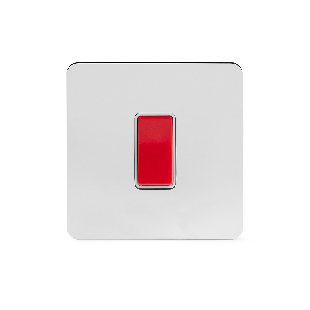 Soho Lighting Polished Chrome Flat Plate 45A 1 Gang Double Pole Switch - Single Plate Wht Ins Screwless