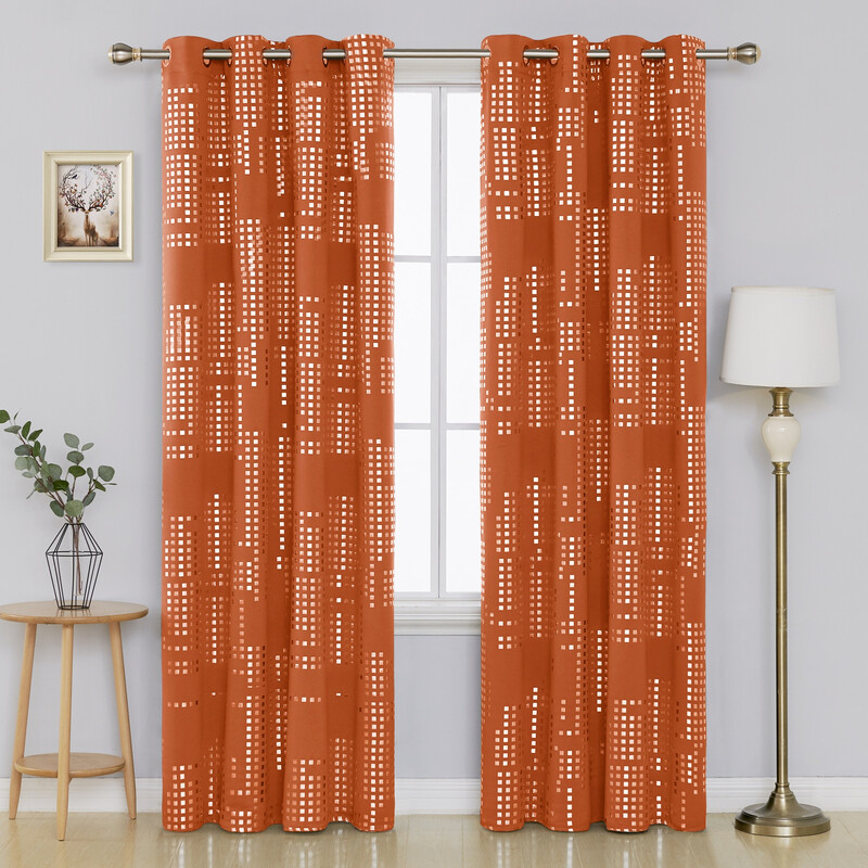 Deconovo Blackout Silver Foil Print Small Check 8 White Grommet No Tie Curtain, 2Pcs W132xL214 Orange Yellow