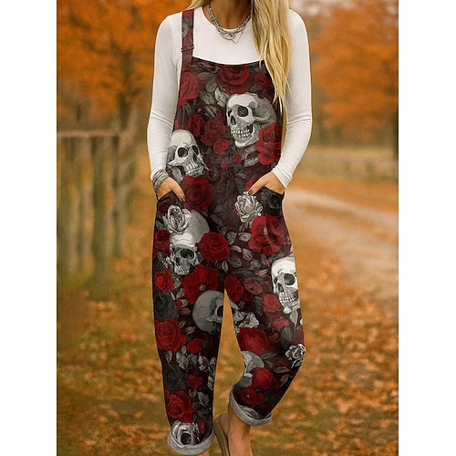 Salopette da donna Leggera Floreale Senza Maniche Gamba Larga Collo Rotondo Tasche Vacanza Quotidiana Vestibilità Larga Nera Bianca Rossa Autunno
