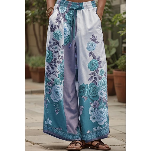 Per donna Culotte Gamba Larga Gamba larga Vacanza Vintage Stile Etnico Lunghezza intera Vita Alta Floreale Grafico Asciugatura Rapida Traspirabilità Morbido Inelastico Formale All'aperto Vacanza Rosa