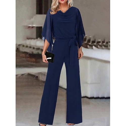 Per donna Normale Tuta Elegante Tinta unica Mezza Manica Gamba larga Girocollo Vita alta Vacanza Quotidiano Vestibilità regolare Nero Vino Blu marino Primavera