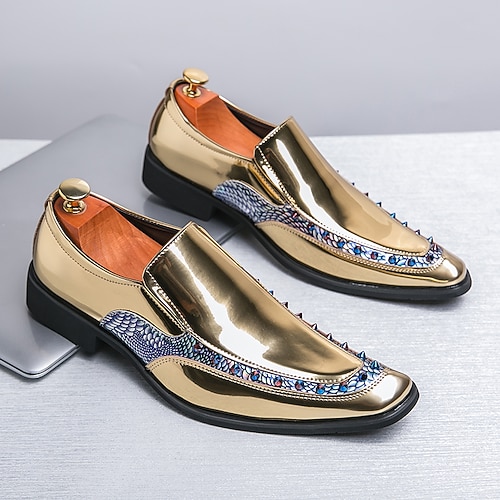 scarpe slip-on da uomo in vernice dorata con dettagli in cristallo - calzature di lusso per feste ed eventi di gala