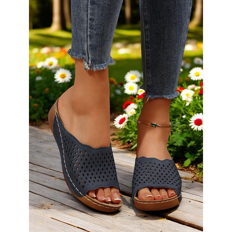 Women's Cutout Slip-On Sandals – Breathable Slide Sandals for Casual Summer Outings Travel