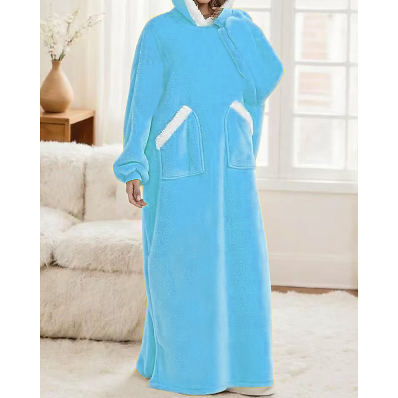 Women's Pajamas Loungewear Flannel Warm Fashion Wearable Blanket Hoodie Pure Color Pocket Home Daily Bed Long Sleeve Hoodie Black Navy Blue Royal Blue Green Light Grey Fall Winter Loose Fit