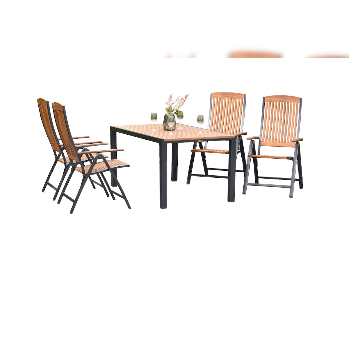 Merxx Athos Gartenmöbel Set 5tlg., 4 Klappsessel, Tisch 150 x 90 cm, Aluminium/Akazie