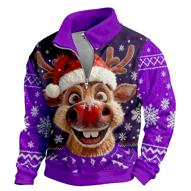 Christmas Men's Elk Sweatshirt Cool Daily Stylish Long Sleeve Stand Collar Outdoor Home Gift Blue Blue 2# Black Red Purple Zipper Fall Winter Designer S M L XL XXL XXXL