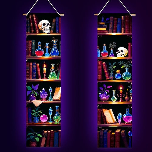 2 pezzi di arazzo con luce nera, libreria magica, arazzo psichedelico con luce nera, decorazione da parete, poster con luce nera reattiva ai raggi UV, sfondo estetico per appendere alla parete della