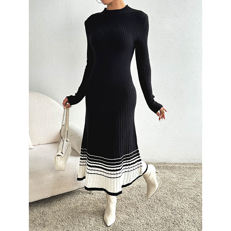 Women's Sweater Casual Print Color Gradient Mock Neck Crewneck Long Sleeve Long Tops Knit Work Black Fall Winter
