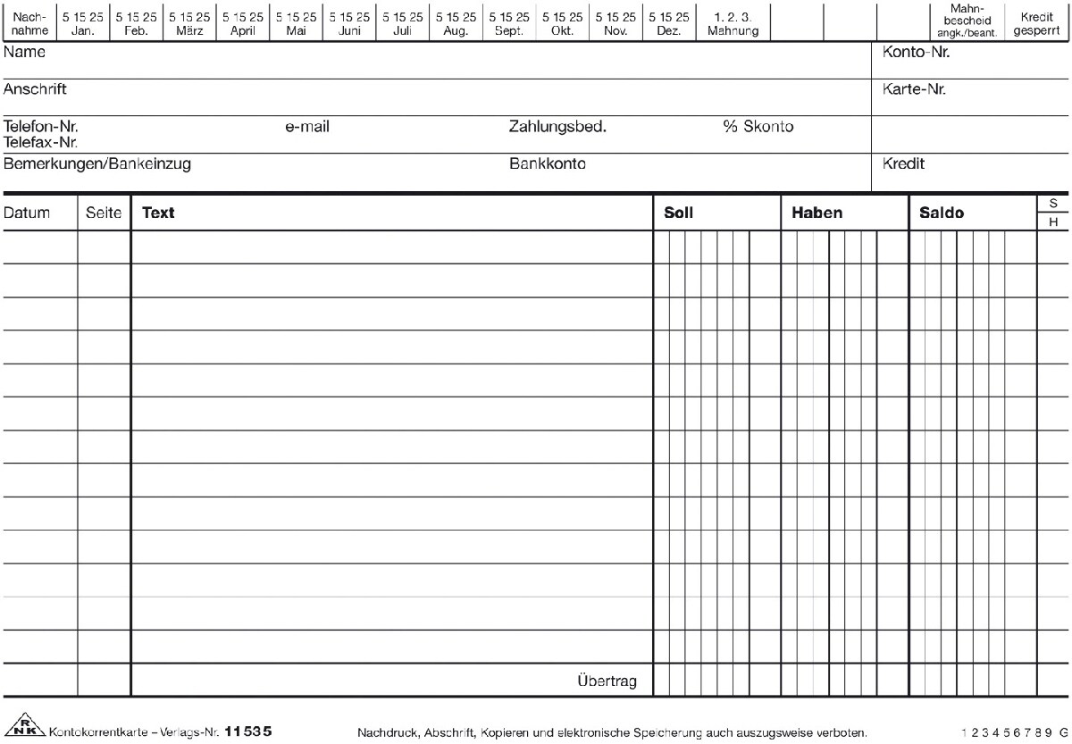 RNK Kontokorrentkarte A5 quer 170 g/qm liniert weiß VE=100 Stück