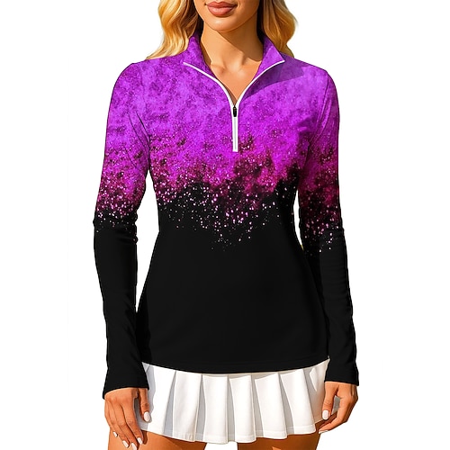 Per donna Sfumatura Marmo Arte astratta Felpa Polo Top Maglietta Maglietta sportiva Manica Lunga Stampato Zip a un quarto Pullover UPF50 Resistente ai Raggi UV Protezione UV Elastico Traspirante